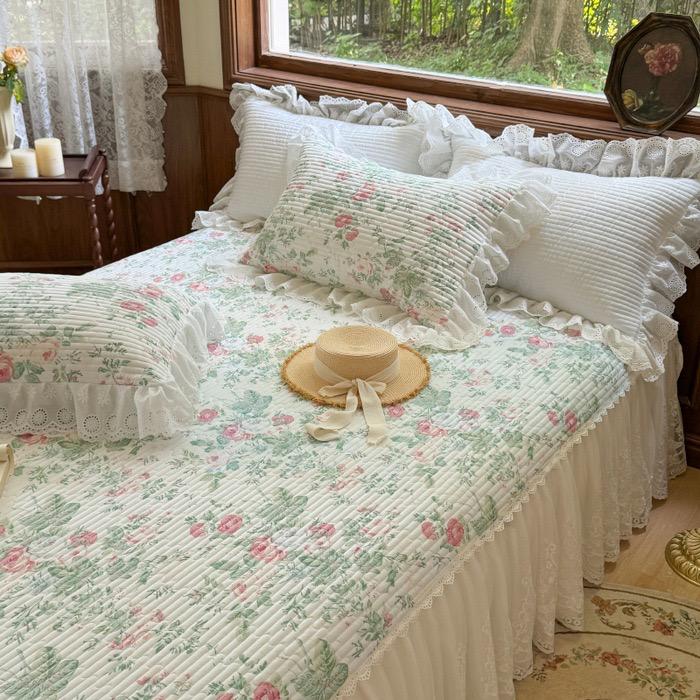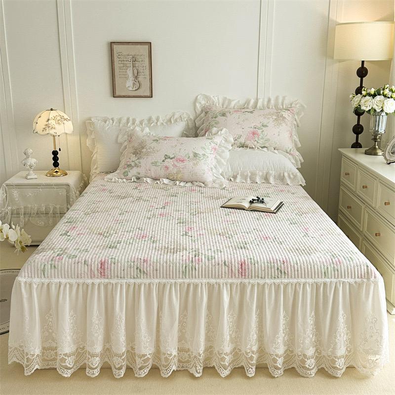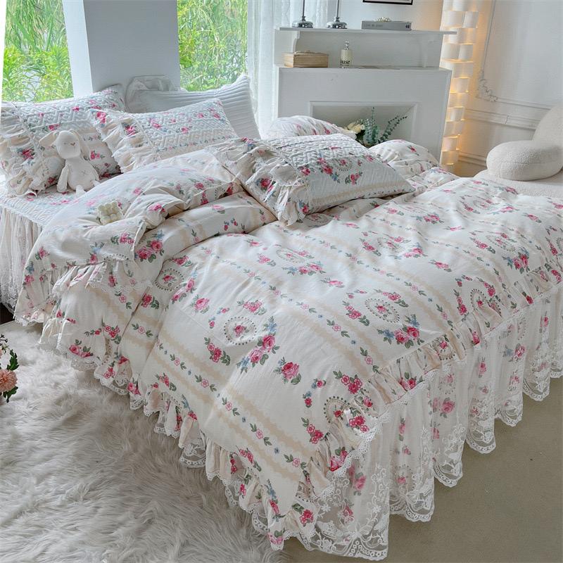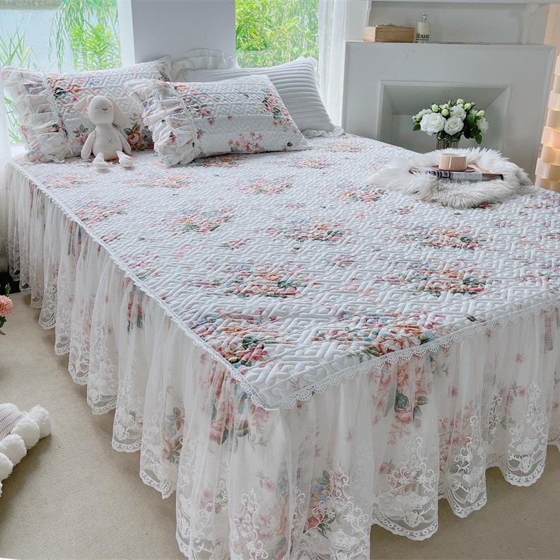 Conçu avec une dentelle délicate et un tissu respirant à motifs floraux pastel, il transforme instantanément votre lit en un cocon de confort et de beauté.